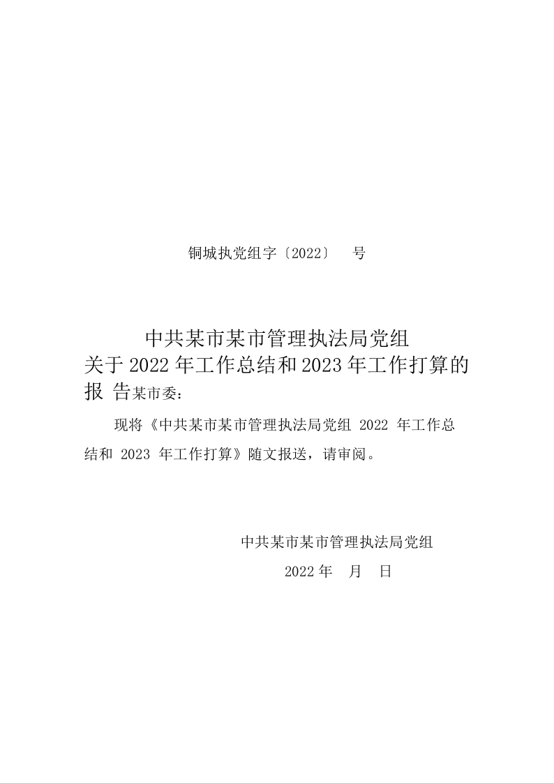 / 城市管理执法局党组2022年工作总结和2023年工作打算