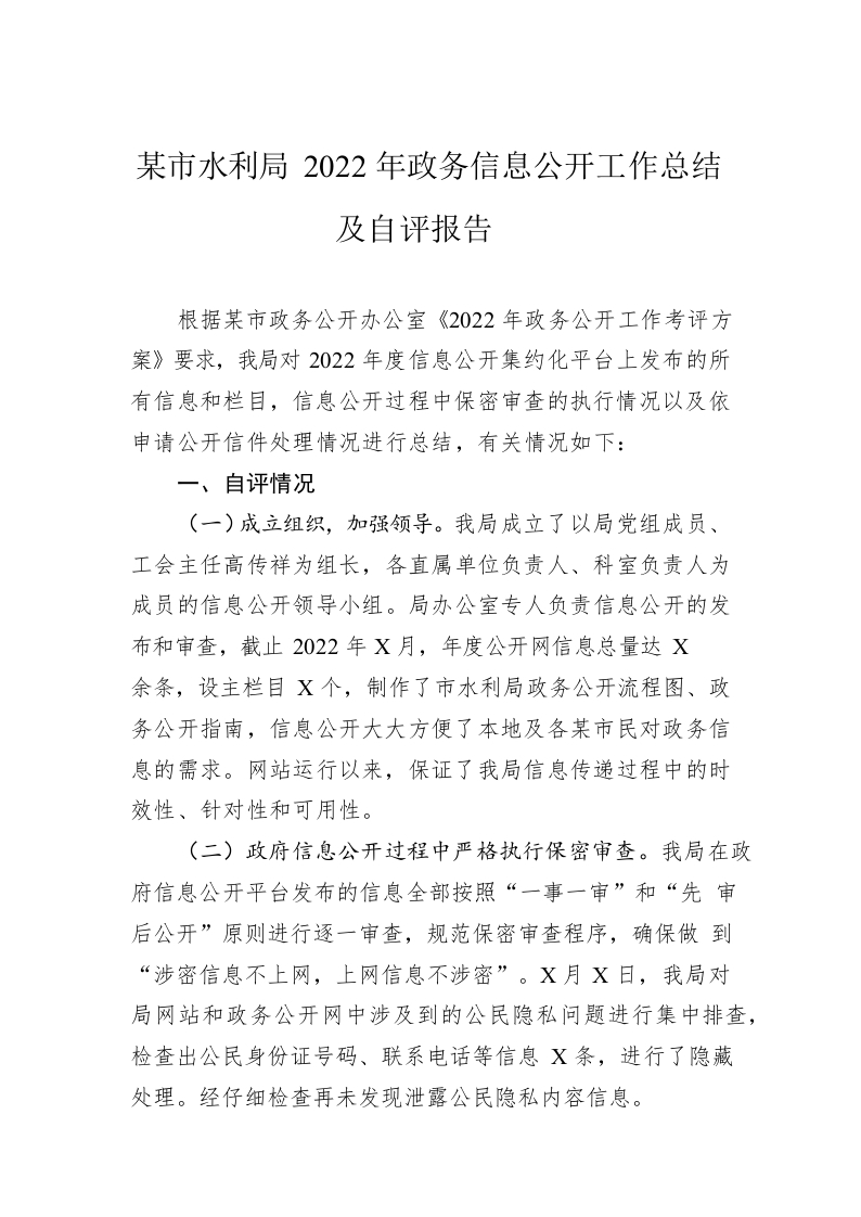 / 滁州市水利局2022年政务信息公开工作总结及自评报告(20221206)