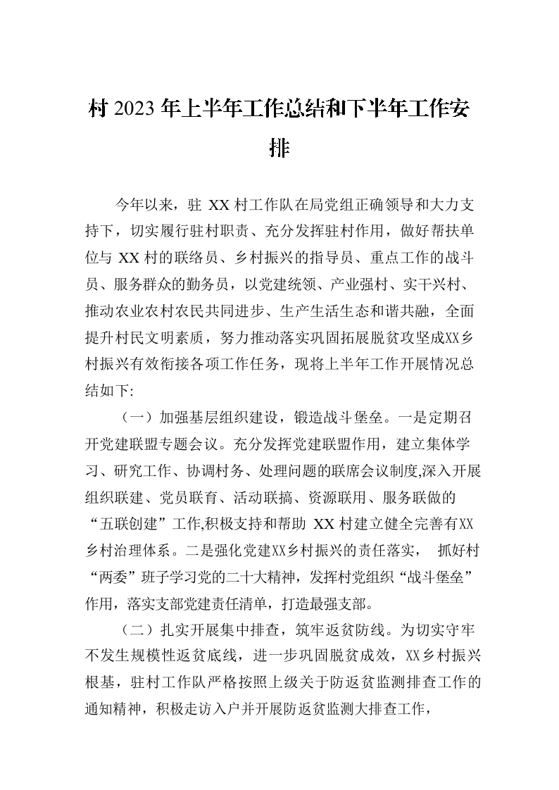 / 村2023年上半年工作总结和下半年工作安排