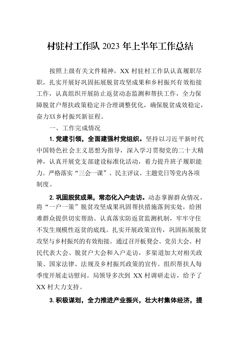 / 村驻村工作队2023年上半年工作总结