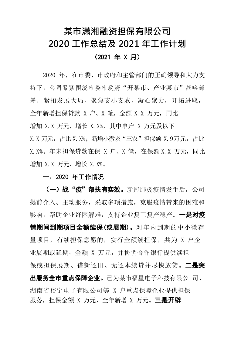 / 担保公司2020年工作总结及2021年工作思路(报)