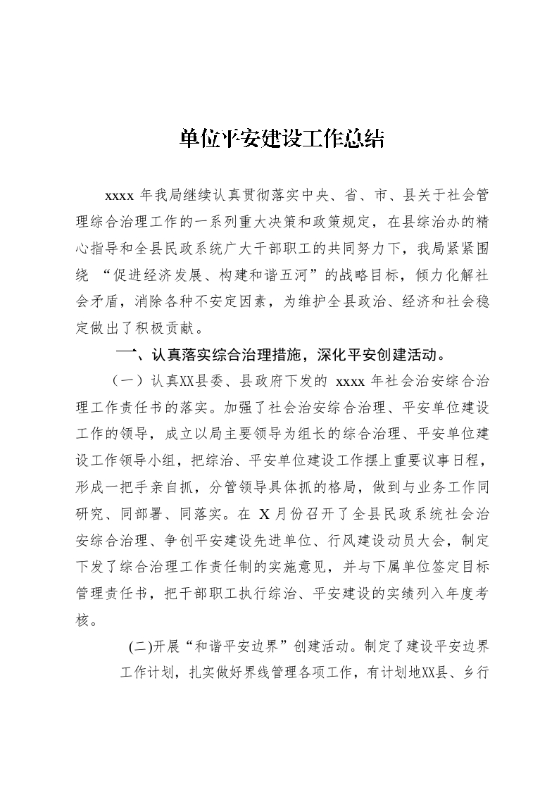/ 单位平安建设工作总结