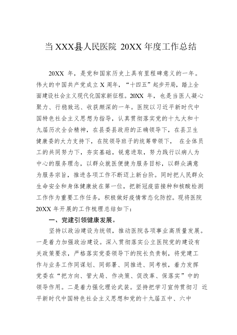 / 当XX县人民医院20XX年度工作总结