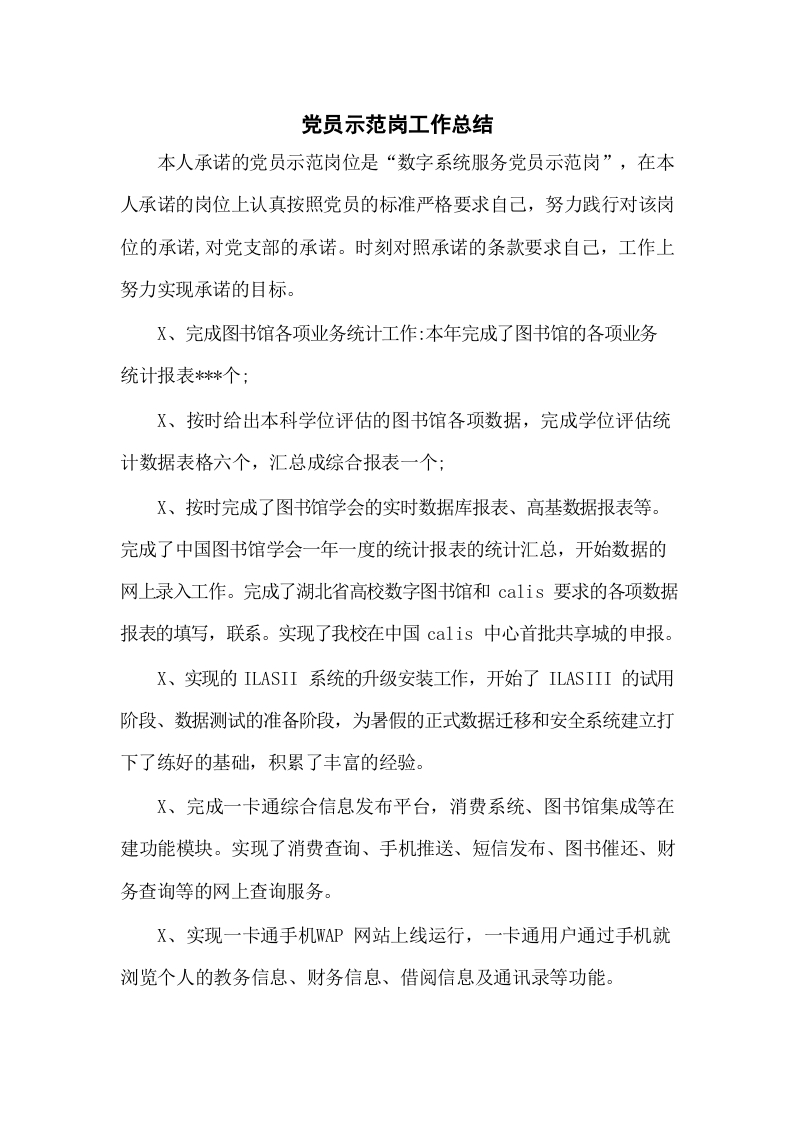 / 党员示范岗工作总结