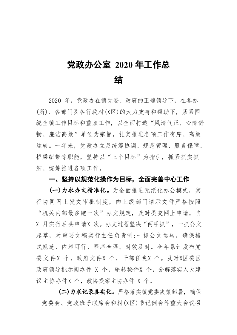 / 党政办公室2020年工作总结