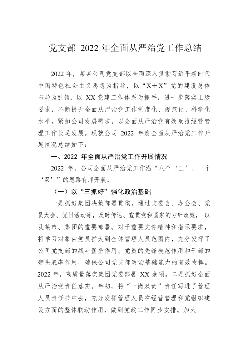 / 党支部2022年全面从严治党工作总结