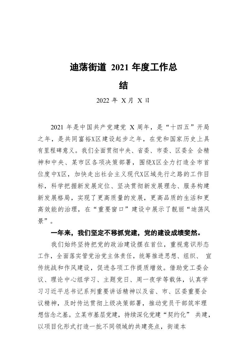 / 迪荡街道2021年度工作总结(20220713)