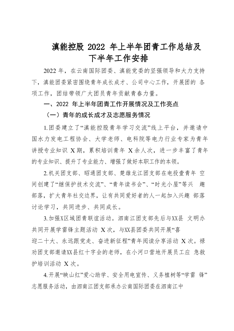/ 滇能控股2022年上半年团青工作总结及下半年工作安排