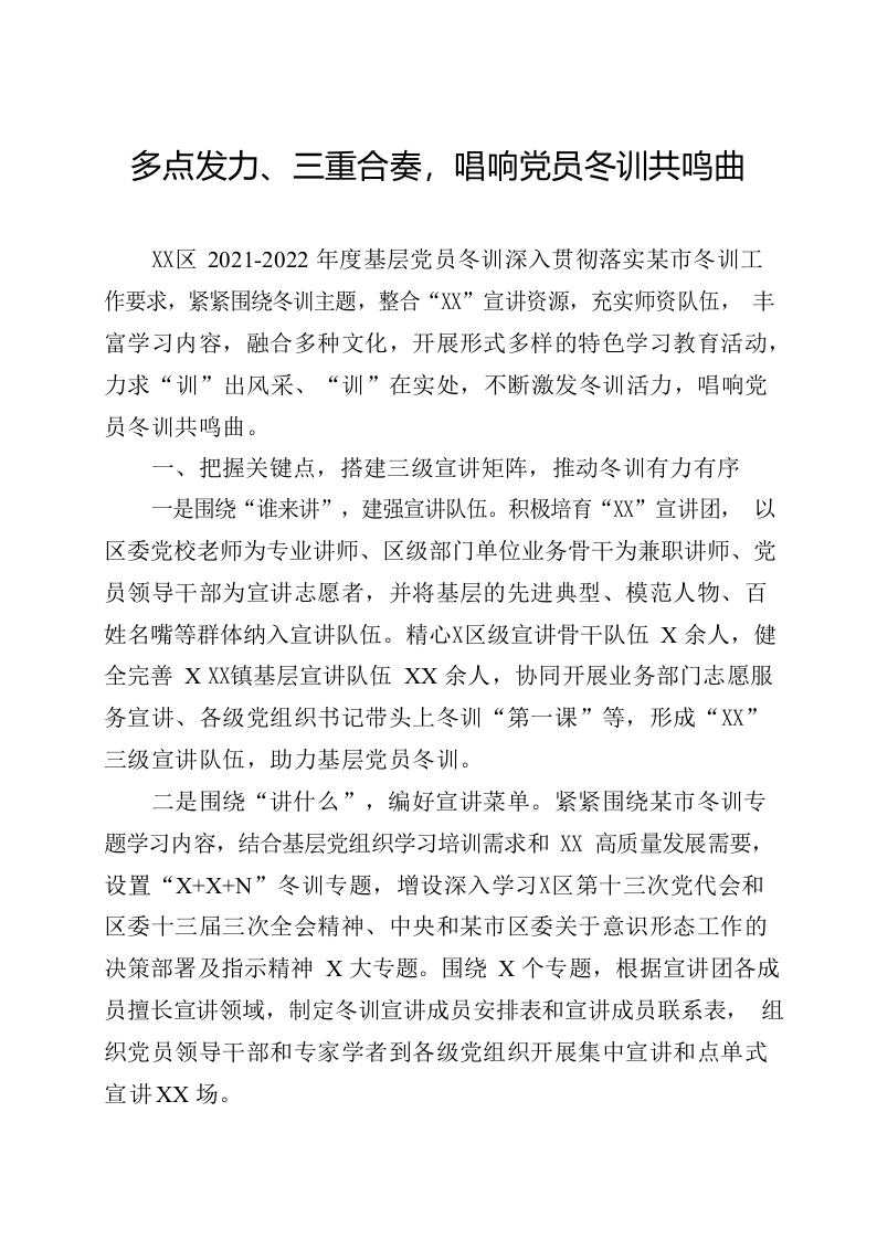/ 多点发力、三重合奏,唱响党员冬训共鸣曲-XX区2021-2022年度冬训工作总结
