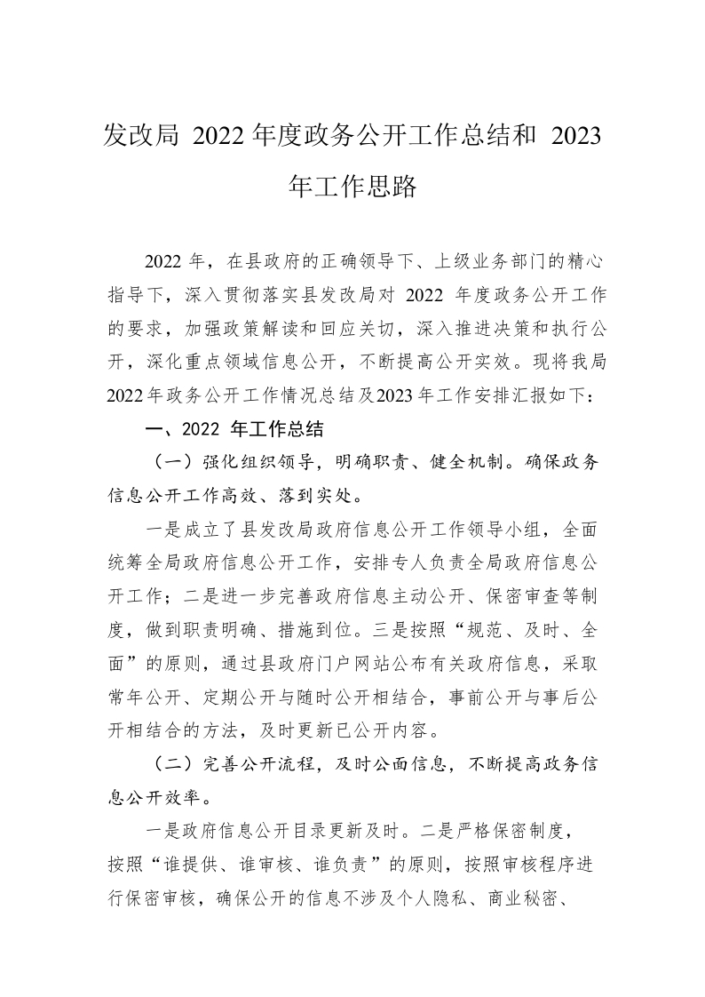 / 发改局2022年度政务公开工作总结和2023年工作思路