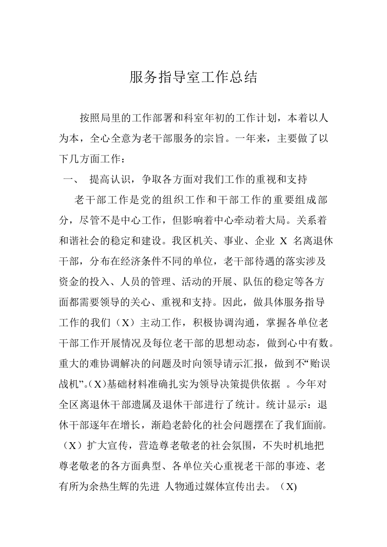 / 服务指导室工作总结