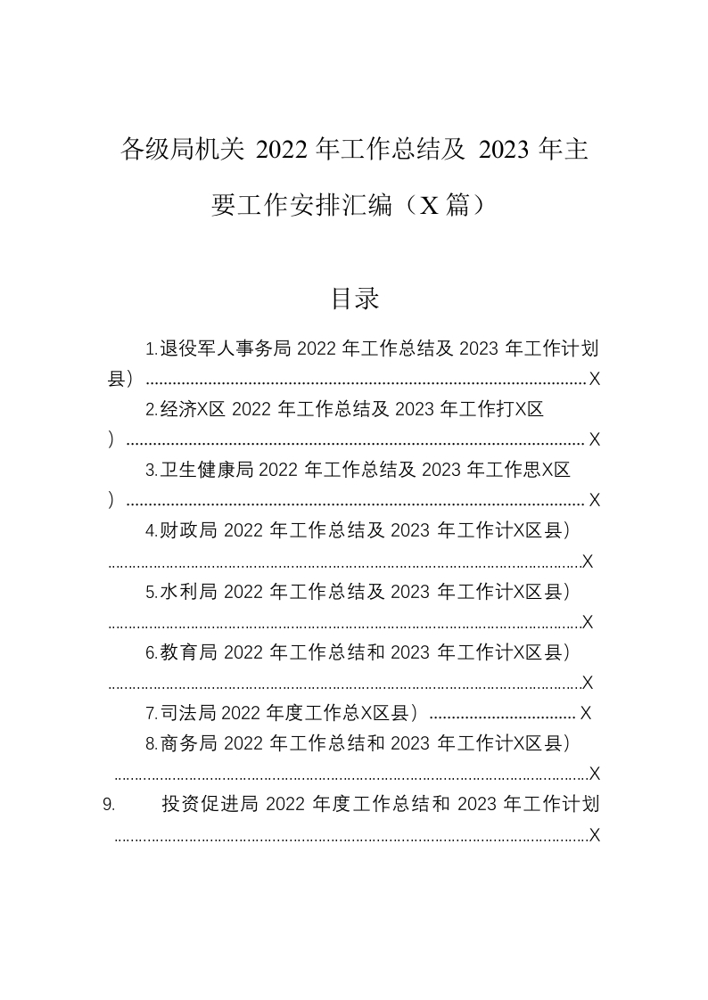 / 各级局机关2022年工作总结及2023年主要工作安排汇编(15篇)