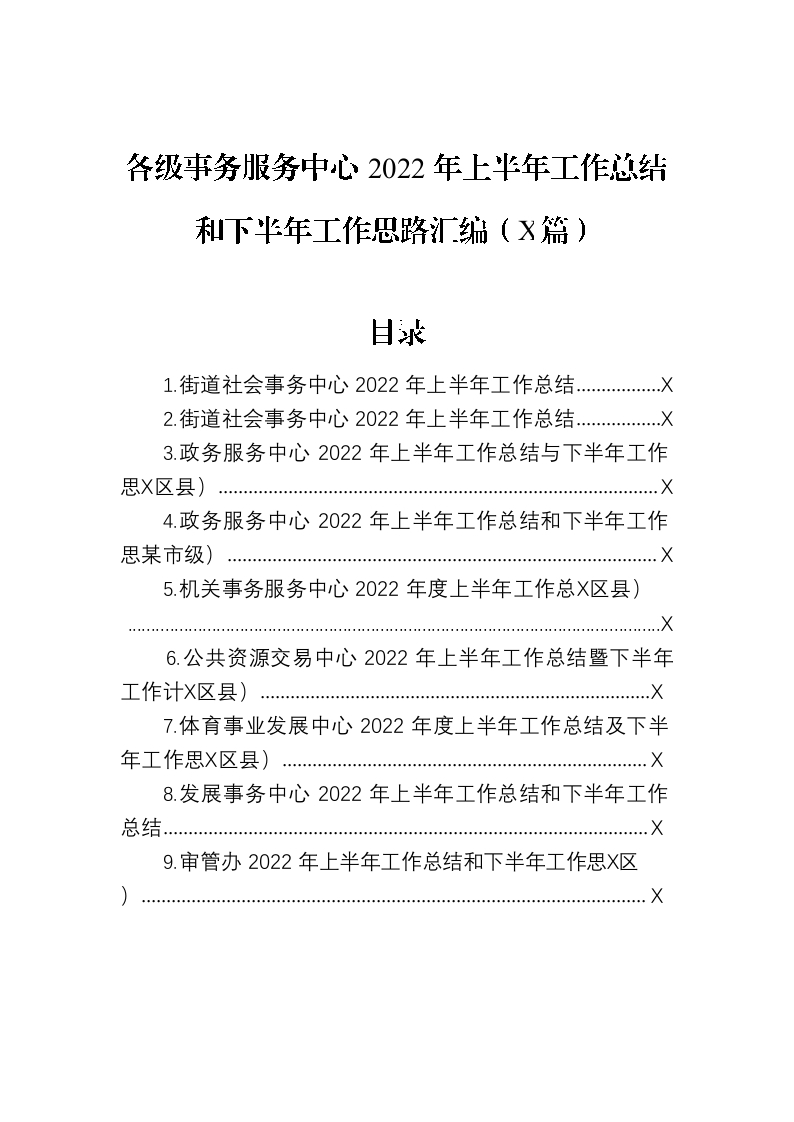 / 各级事务服务中心2022年上半年工作总结和下半年工作思路汇编(9篇)