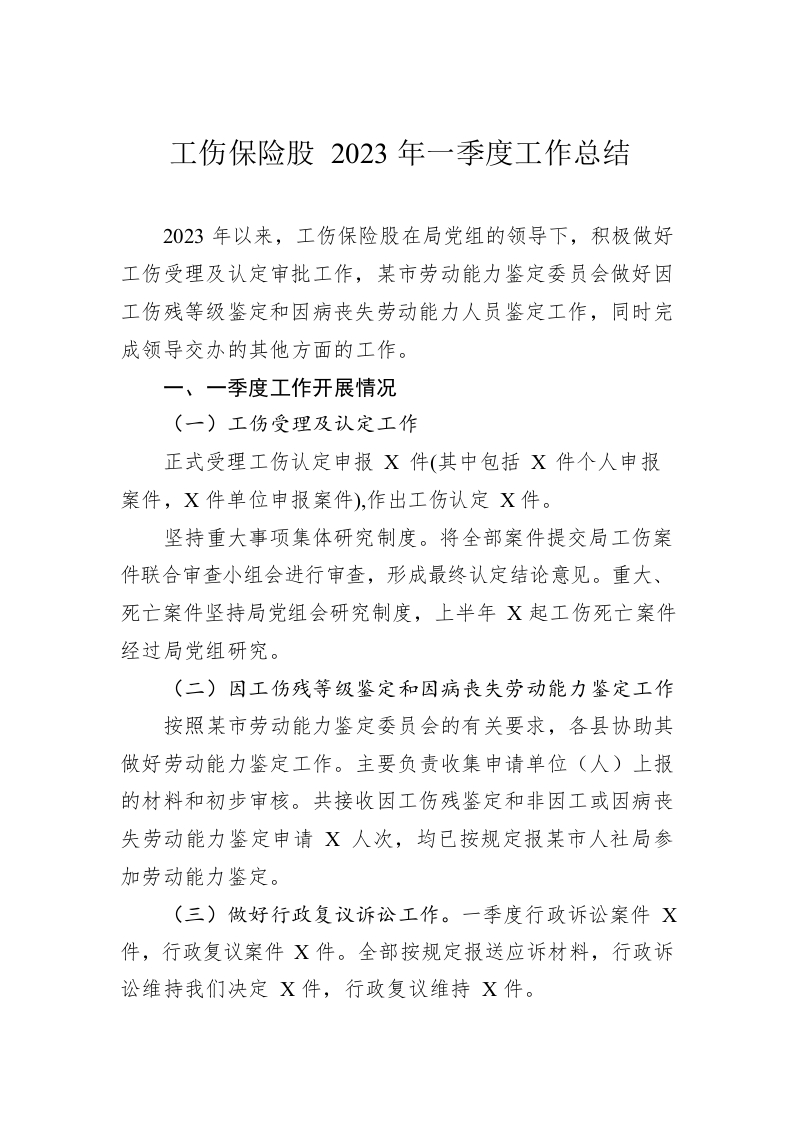 / 工伤保险股2023年一季度工作总结(20230509)