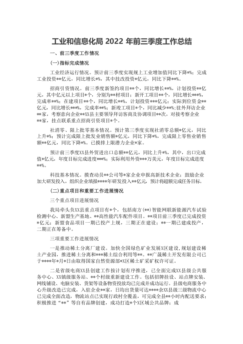 / 工业和信息化局2022年前三季度工作总结
