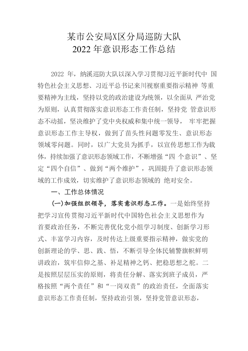 / 公安局分局巡防大队2022年意识形态工作总结