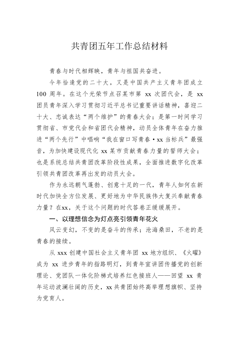 / 共青团五年工作总结材料