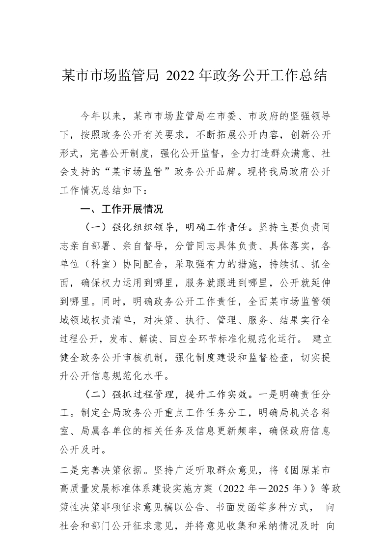 / 固原市市场监管局2022年政务公开工作总结(20221205)