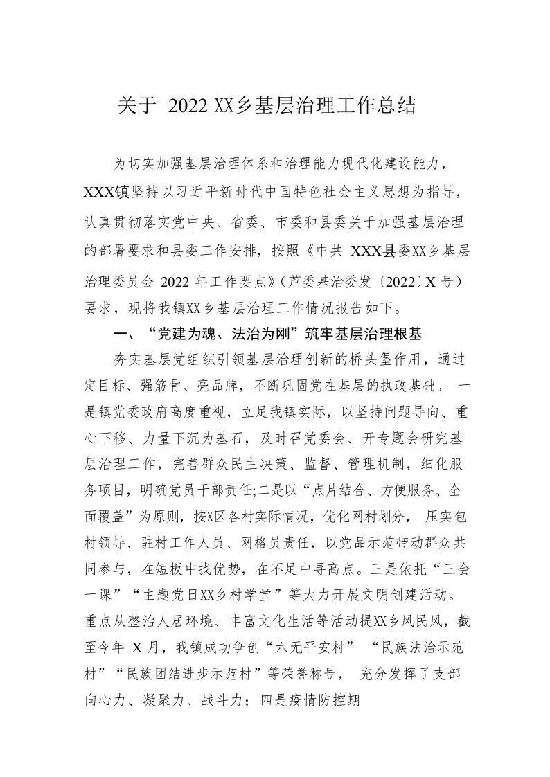 / 关于2022年城乡基层治理工作总结(20221207)