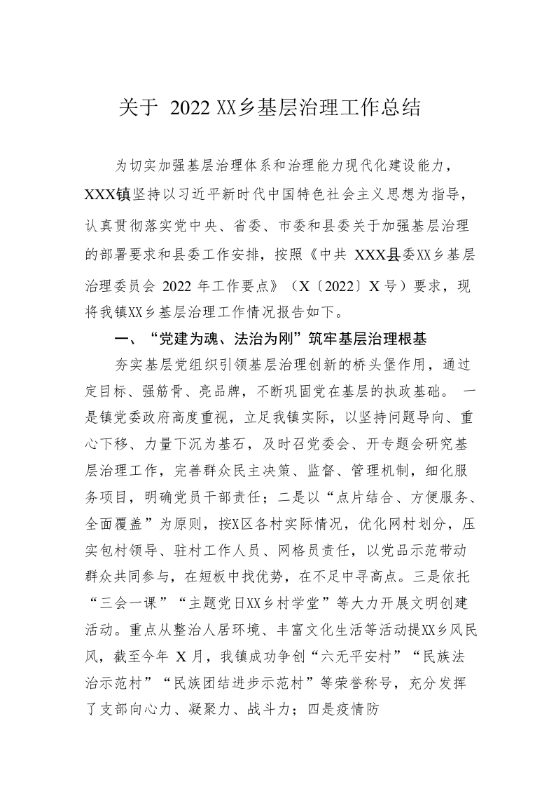 关于2022年城乡基层治理工作总结