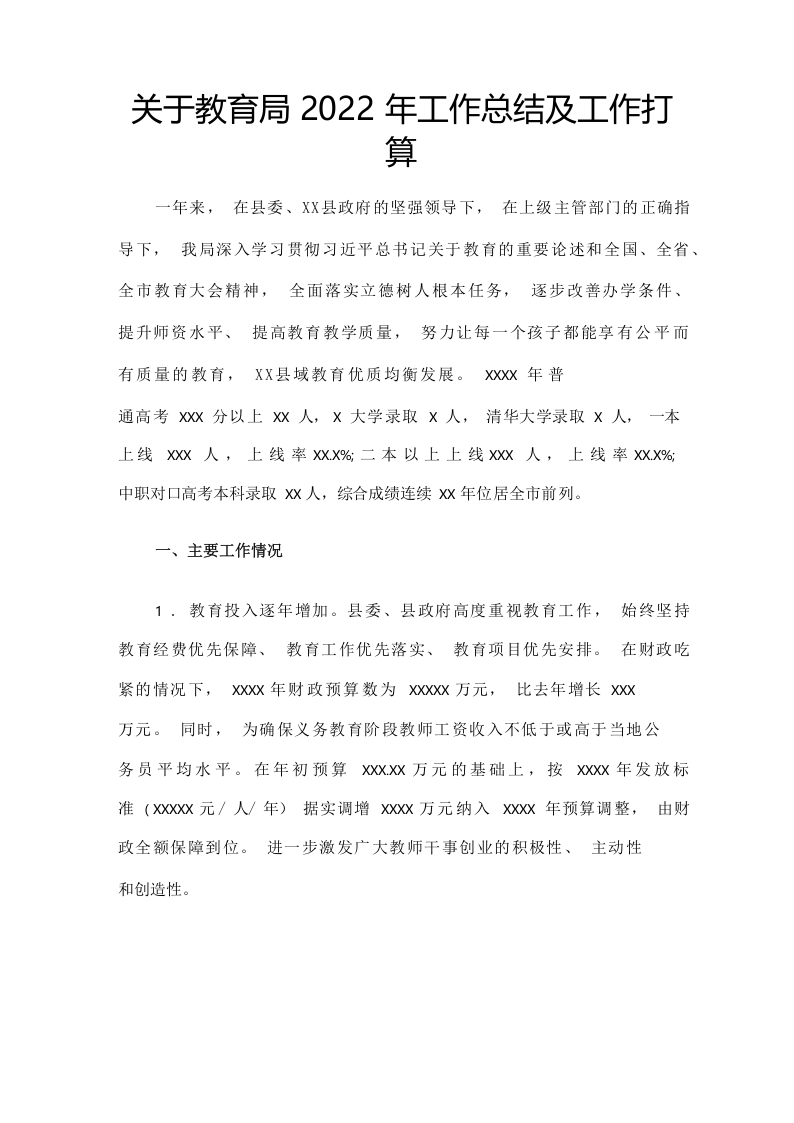 / 关于教育局2022年工作总结及工作打算范文