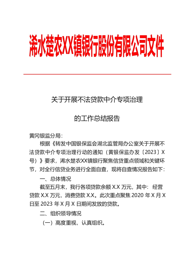 / 关于开展不法贷款中介专项治理的工作总结报告