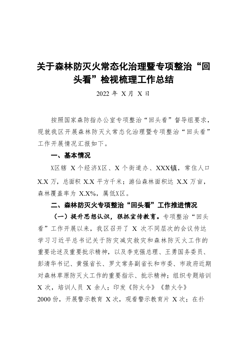 / 关于森林防灭火常态化治理暨专项整治“回头看”检视梳理工作总结(20220501)