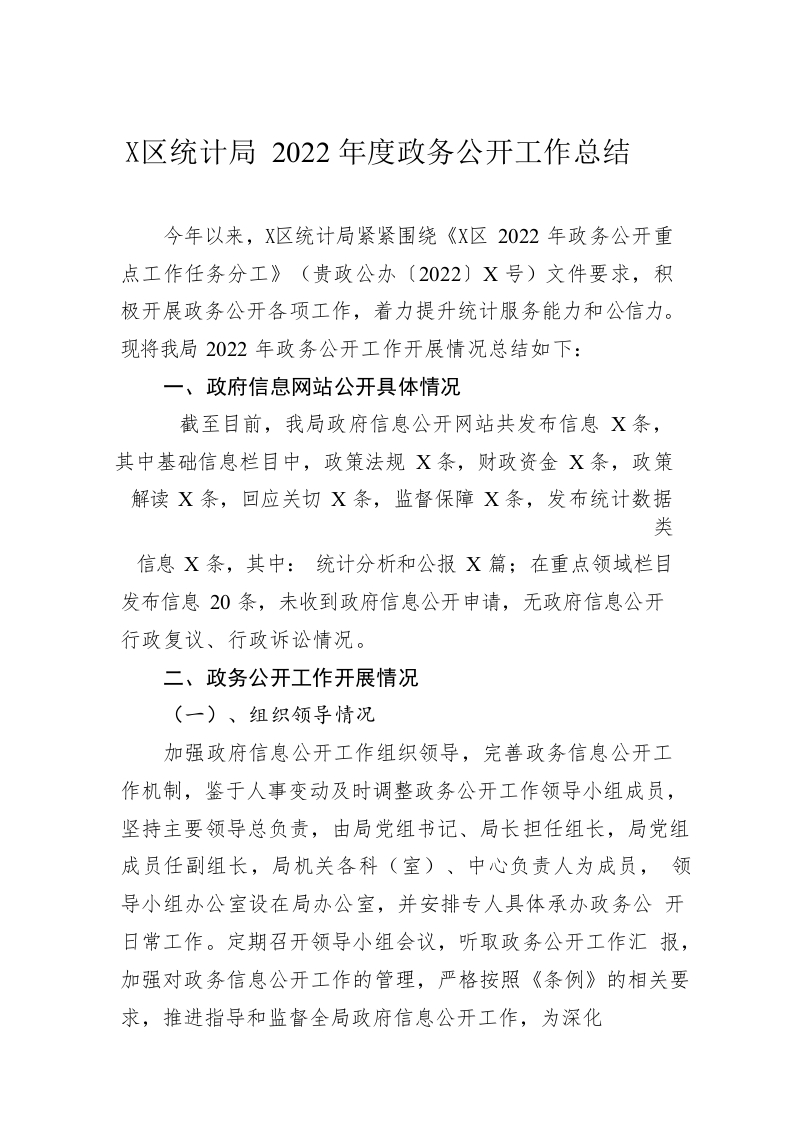 / 贵池区统计局2022年度政务公开工作总结(20221219)