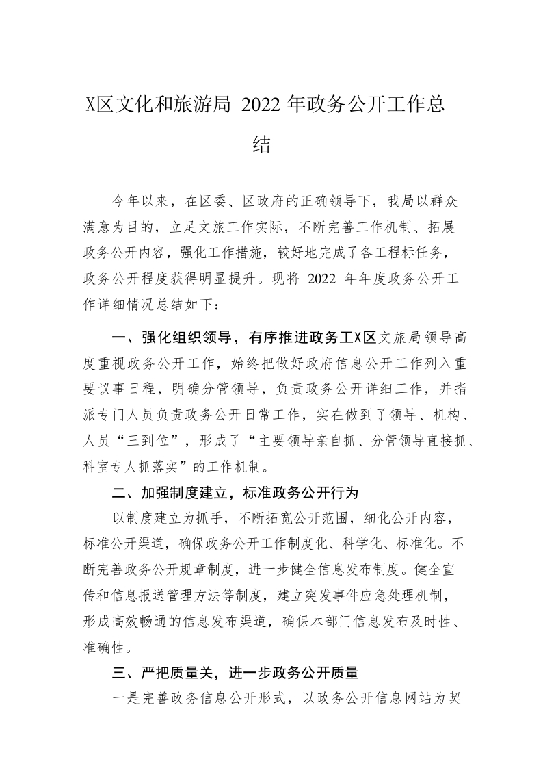 / 贵池区文化和旅游局2022年政务公开工作总结(20221219)