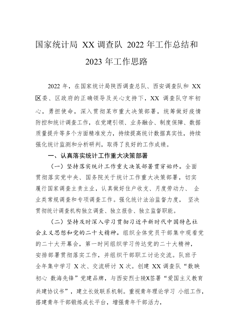 / 国家统计局XX调查队2022年工作总结和2023年工作思路