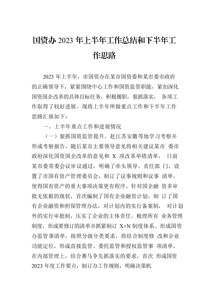 / 国资办2023年上半年工作总结和下半年工作思路