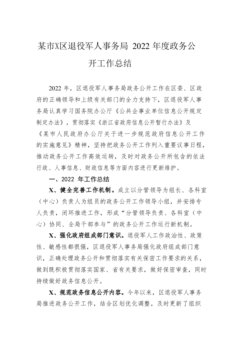 杭州市上城区退役军人事务局2022年度政务公开工作总结(20221221)