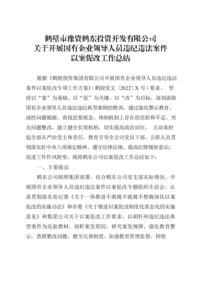 / 鹤东公司国企领导以案促改工作总结