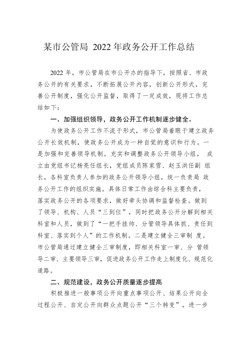/ 淮南市公管局2022年政务公开工作总结(20221220)