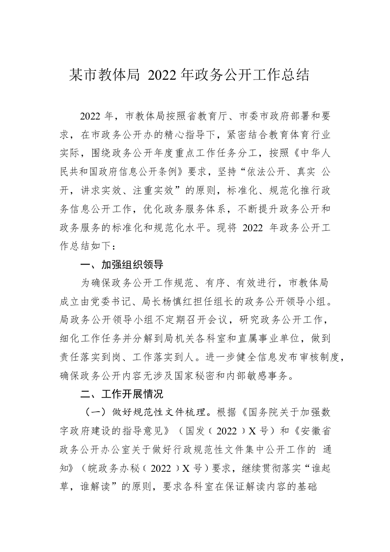 / 淮南市教体局2022年政务公开工作总结(20221220)