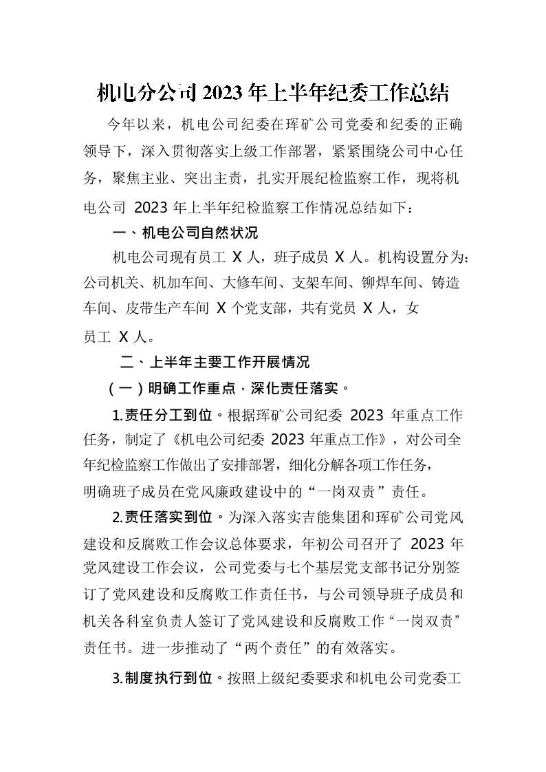 机电分公司2023年上半年工作总结及下半年工作打算(后改)