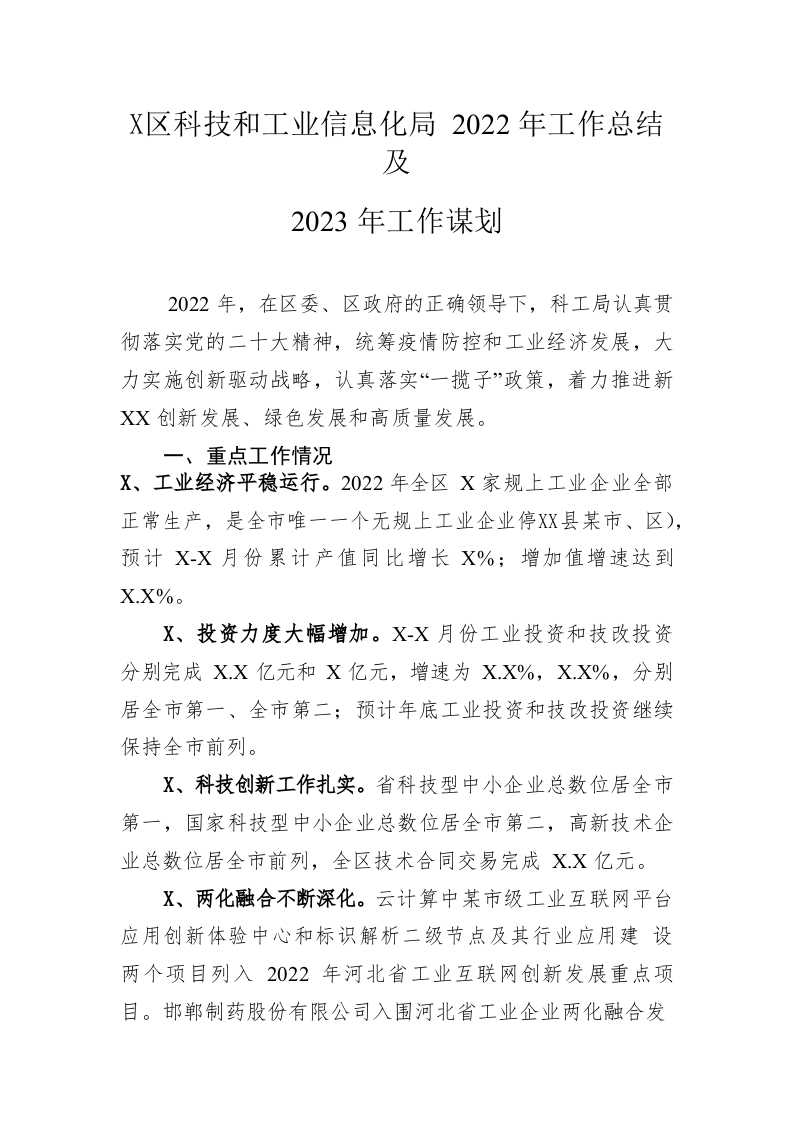 / 区科技和工业信息化局 2022年工作总结及2023年工作谋划