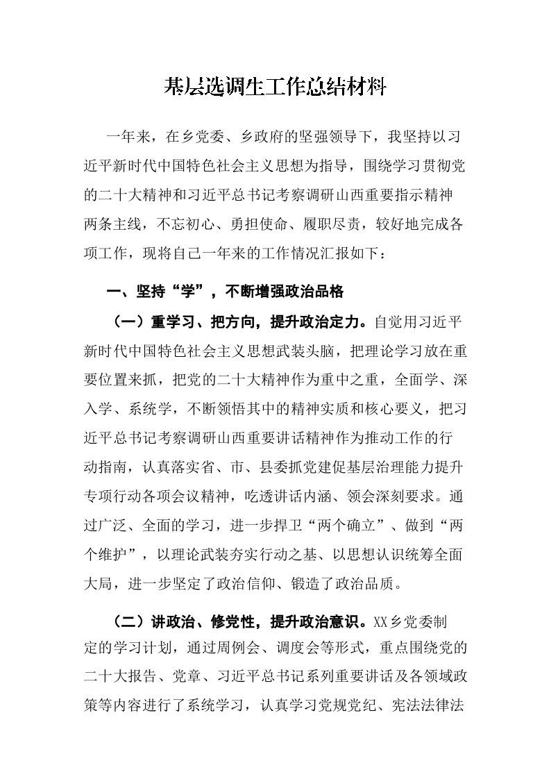 基层选调生工作总结材料
