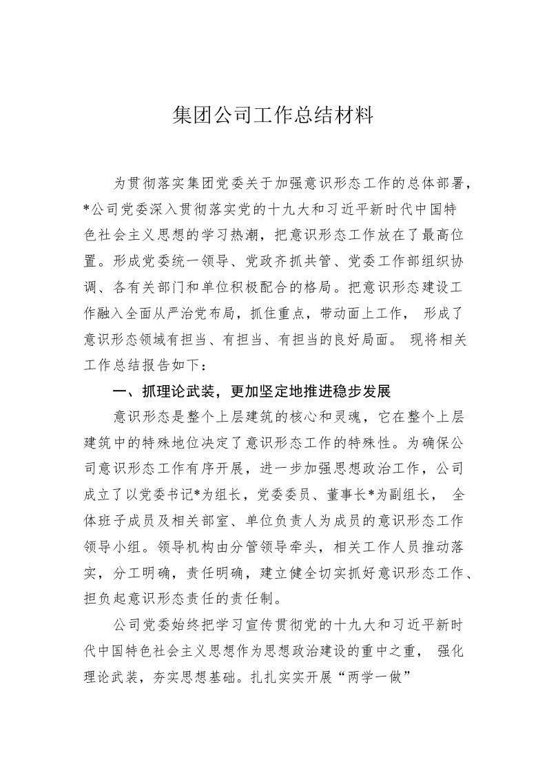 / 集团公司工作总结材料