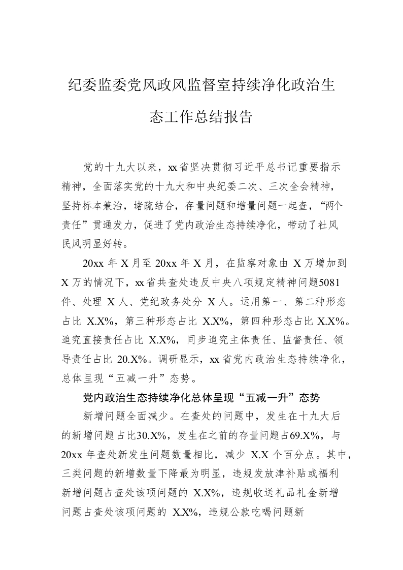 / 纪委监委党风政风监督室持续净化政治生态工作总结报告