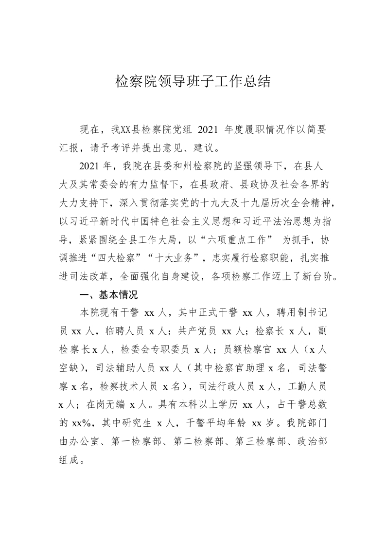 / 检察院领导班子工作总结