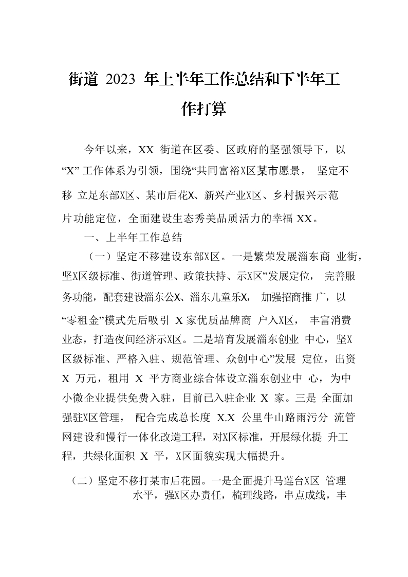 / 街道 2023 年上半年工作总结和下半年工作打算