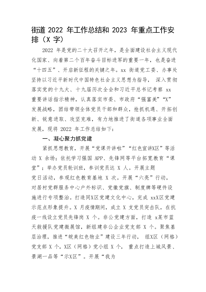 / 街道2022年工作总结和2023年重点工作安排