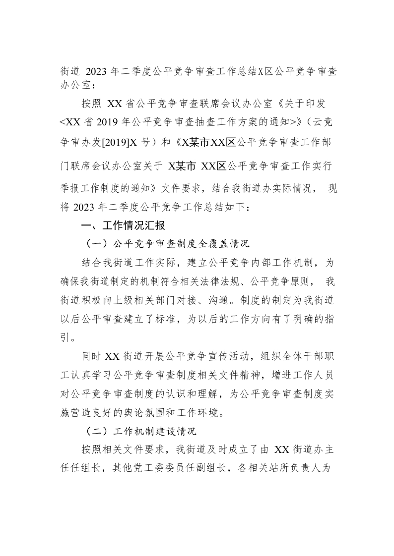 / 街道2023年二季度公平竞争审查工作总结(20230613)