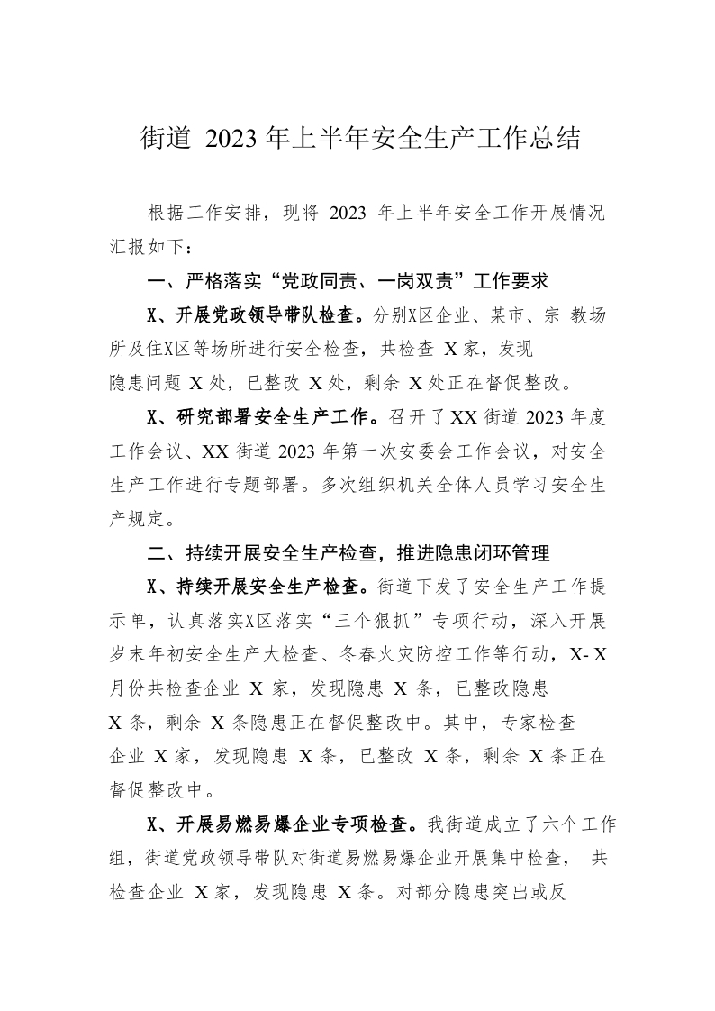 / 街道2023年上半年安全生产工作总结(20230608)