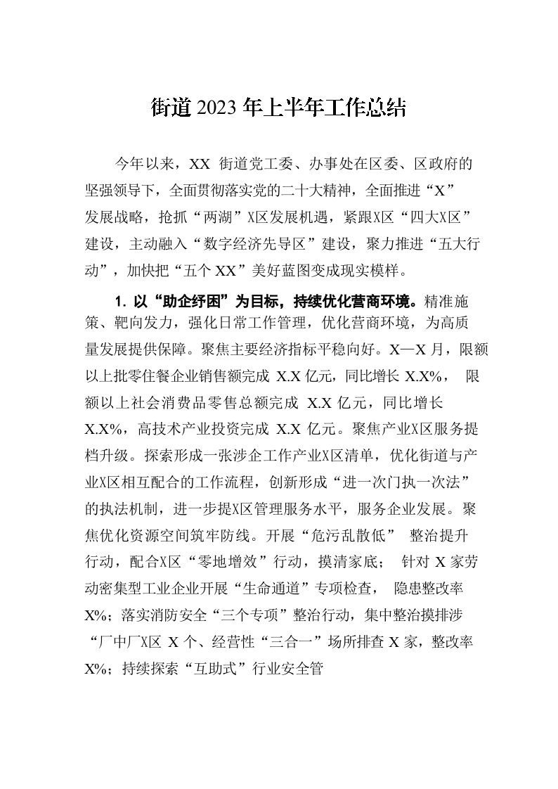 街道2023年上半年工作总结和下半年工作安排(20230704)