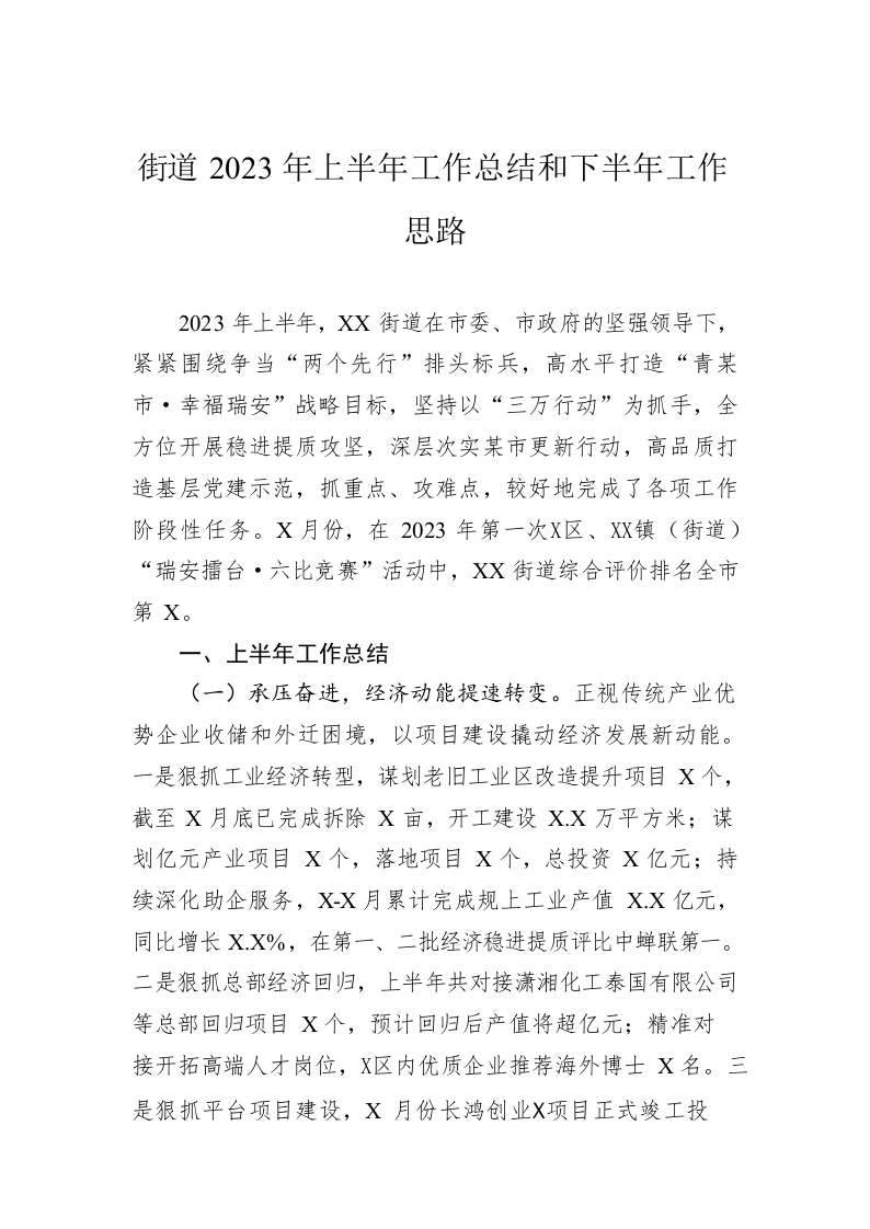 / 街道2023年上半年工作总结和下半年工作思路(20230628)