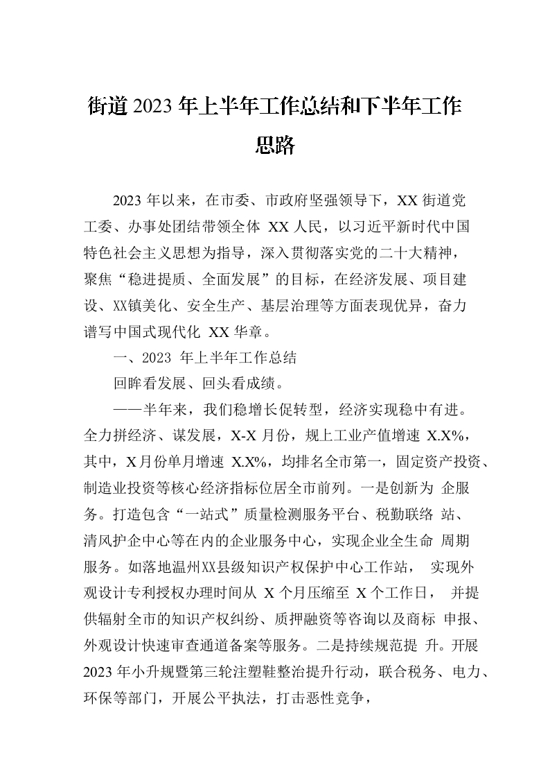 / 街道2023年上半年工作总结和下半年工作思路(20230703)