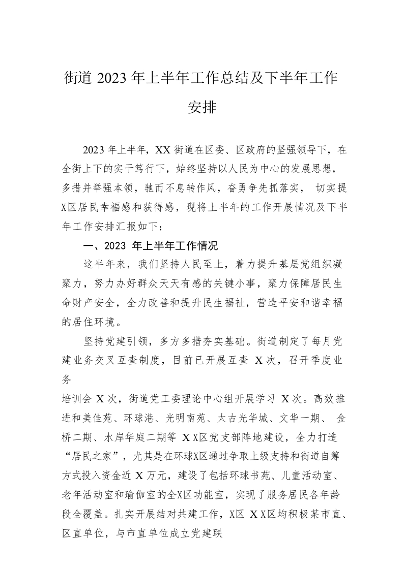 街道2023年上半年工作总结及下半年工作安排(20230616)