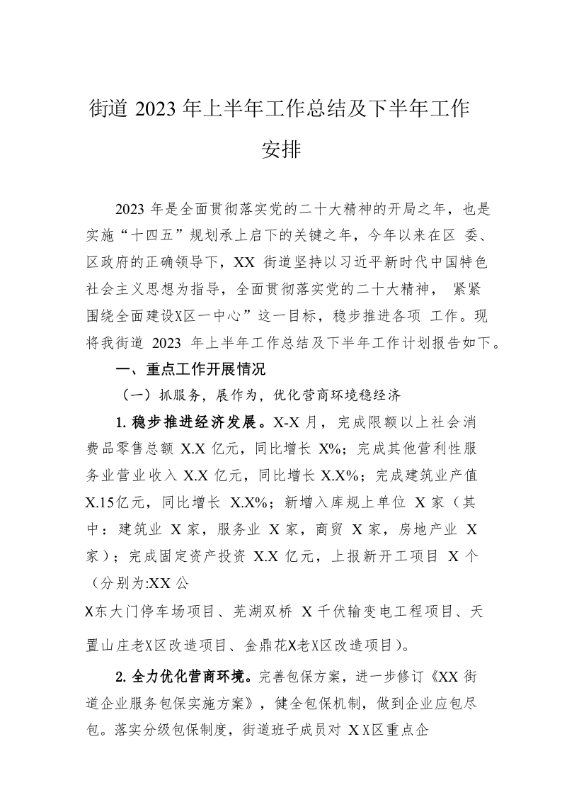 街道2023年上半年工作总结及下半年工作安排(20230626)